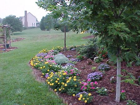 Different flower beds in the back yard